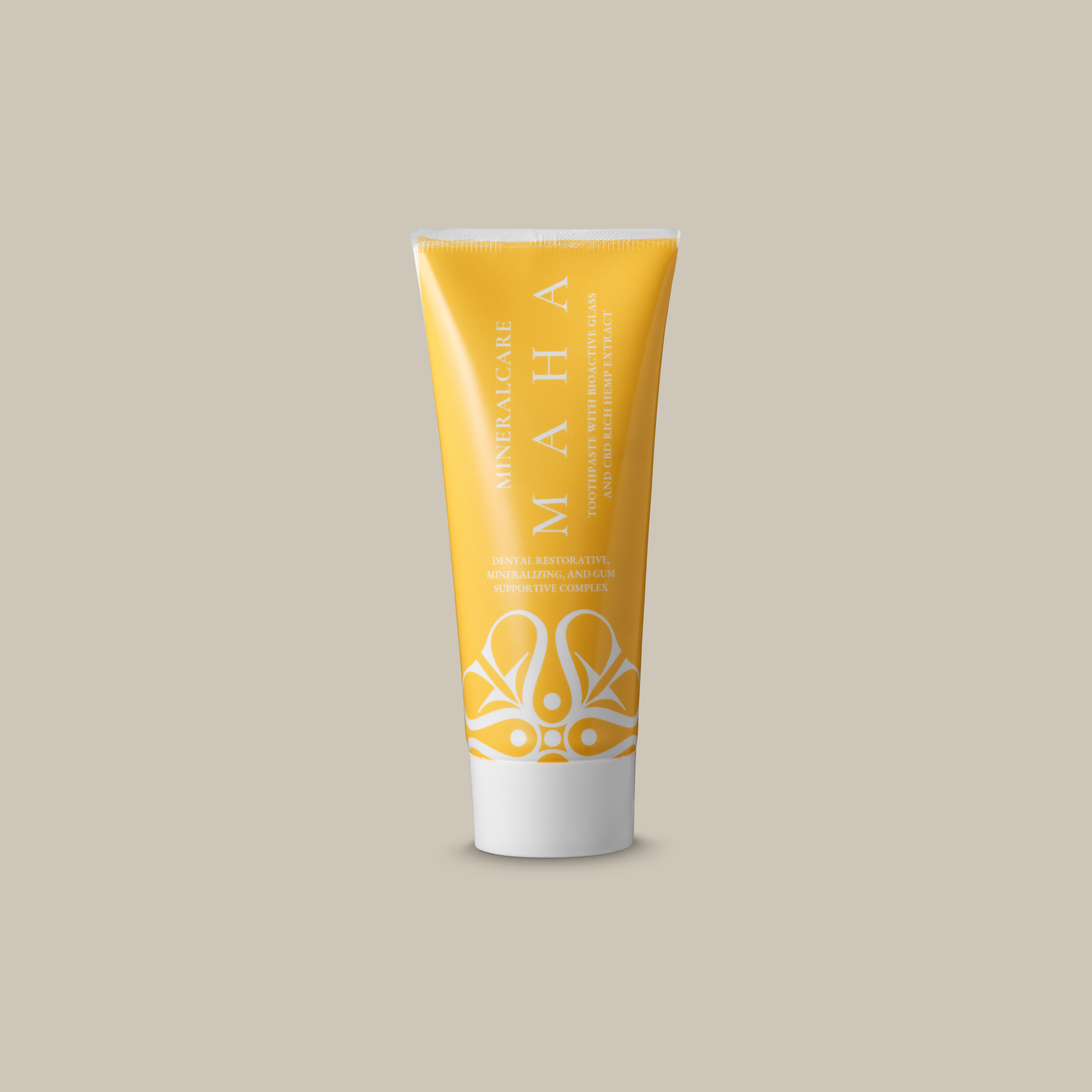 MAHA Mineralcare - a fluoride-free formulation that simultaneously remineralizes hard dental tissues, soothes gums, relieves hypersensitivity, and delivers long-lasting, gentle citrus-herbal freshness.